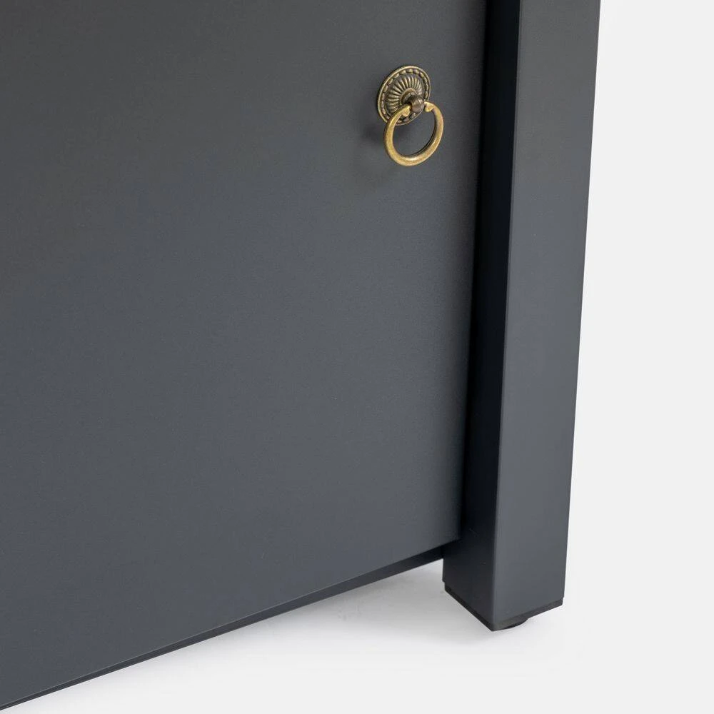 - Modern iron construction is rust and heat resistant for year-round durability