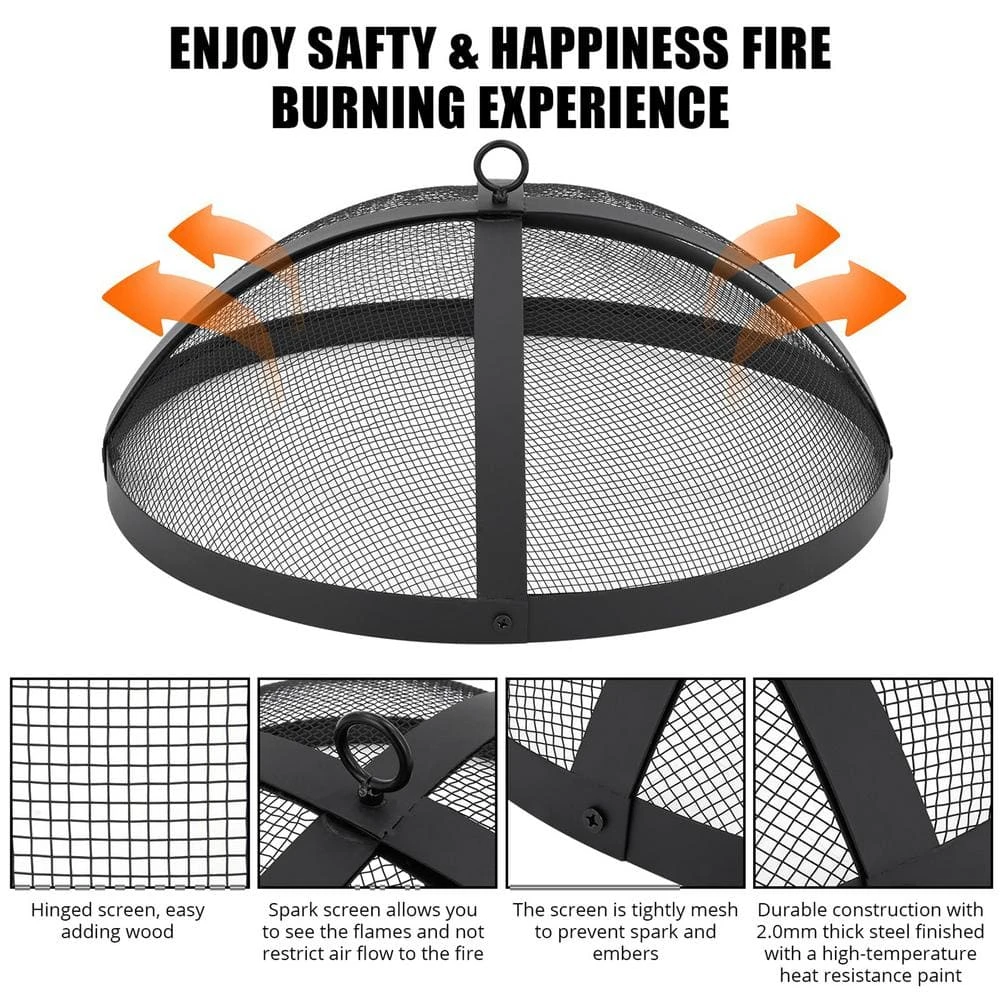 Upgrade your outdoor experience with our sturdy fire pit spark screen cover, designed with a heat-resistant and rust-proof coating that withstands direct flames. This durable cover not only enhances safety but also allows for efficient burning, making it an essential accessory for your fire pit. Durable Material: Constructed with an improved heat-resistant and rust-proof coating, this round fire pit screen is built to last, maintaining its shape and integrity even under pressure or extreme temperatures. Tight Mesh Design: Featuring a fine mesh, the spark screen effectively prevents sparks from escaping while providing excellent ventilation, allowing for a more efficient burn of your firewood, even on chilly nights. Safe Top Ring: The metal ring design offers a secure grip for easy handling with the poker, ensuring safe movement without the risk of sliding or injury. Easy Installation: The fire pit lid is simple to assemble with screw connections, breaking down into 4-easy-to-store pieces that occupy minimal space. Lightweight and portable, it’s perfect for travel and outdoor adventures. Versatile Application: This spark screen is ideal for bonfires at camping sites, beaches, RVs, or backyards, helping you create memorable gatherings with family and friends.