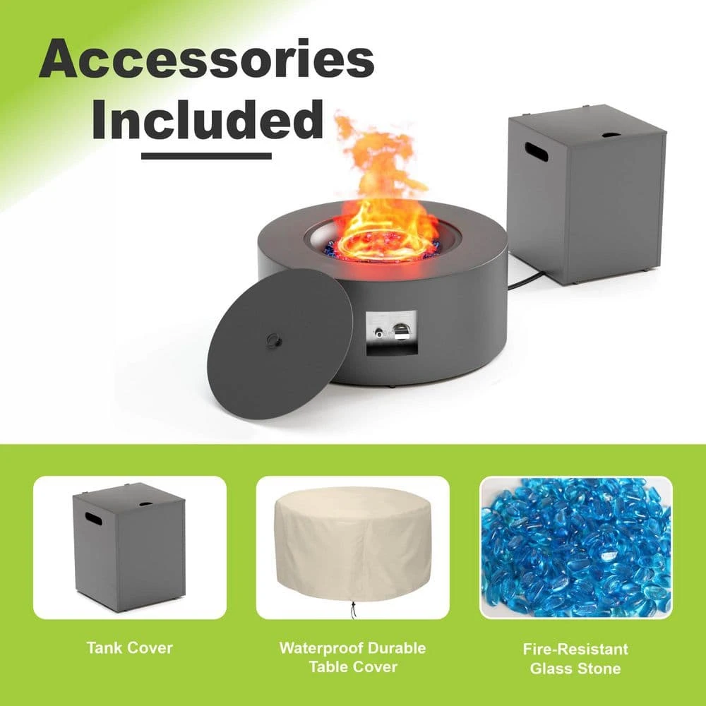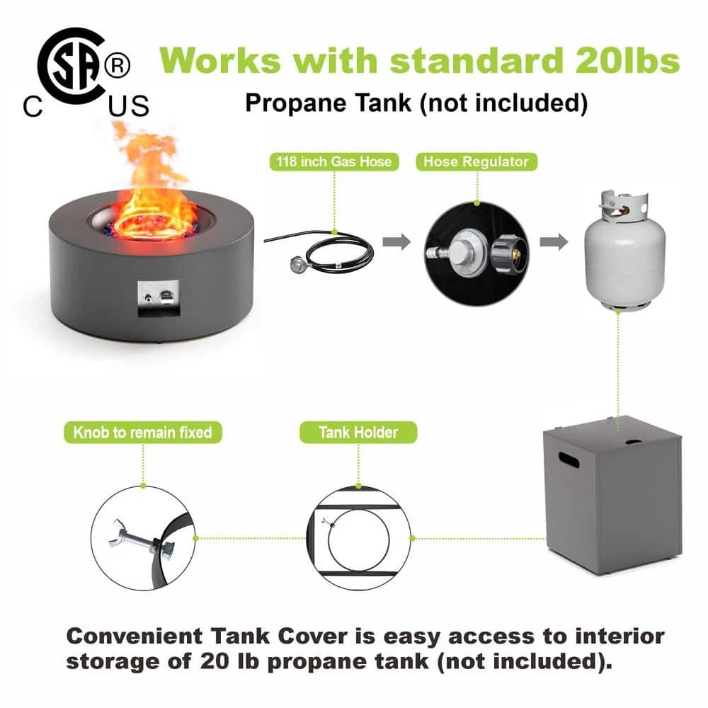 - Buy with confidence: this product comes with a main outdoor fire pit table, a 20 lbs. propane tank table, a bag of blue fire glass stone, and a rain cover. (propane tank not included) if there’s any problem with our propane fire pit, please email us for the solution without hesitation, there are specific contact information in warranty