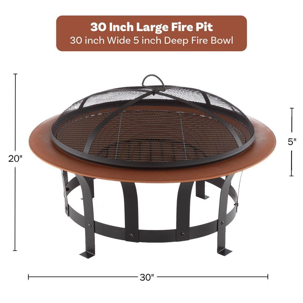 Add warmth and ambiance to outdoor areas with the 30-Inch Fire pit for Outside Patio by Pure Garden. This attractive outdoor fire pit features a sturdy steel bowl with a 22.5-inch cooking grate, so you can enjoy sitting by the fire on cold days roasting marshmallows and chatting with the family. A mesh fire pit screen and 18-inch log poker ensure that this fire pit ring provides safe, comfortable warmth on cool summer nights or crisp fall evenings