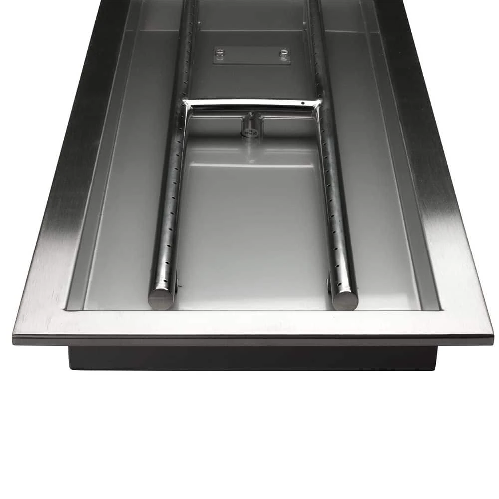 - Specifications- 30 in. x 10 in. rectangular fire pit burner with a 1/2 in. NPT threaded male inlet, this burner is rated for up to 125,000 BTU’s