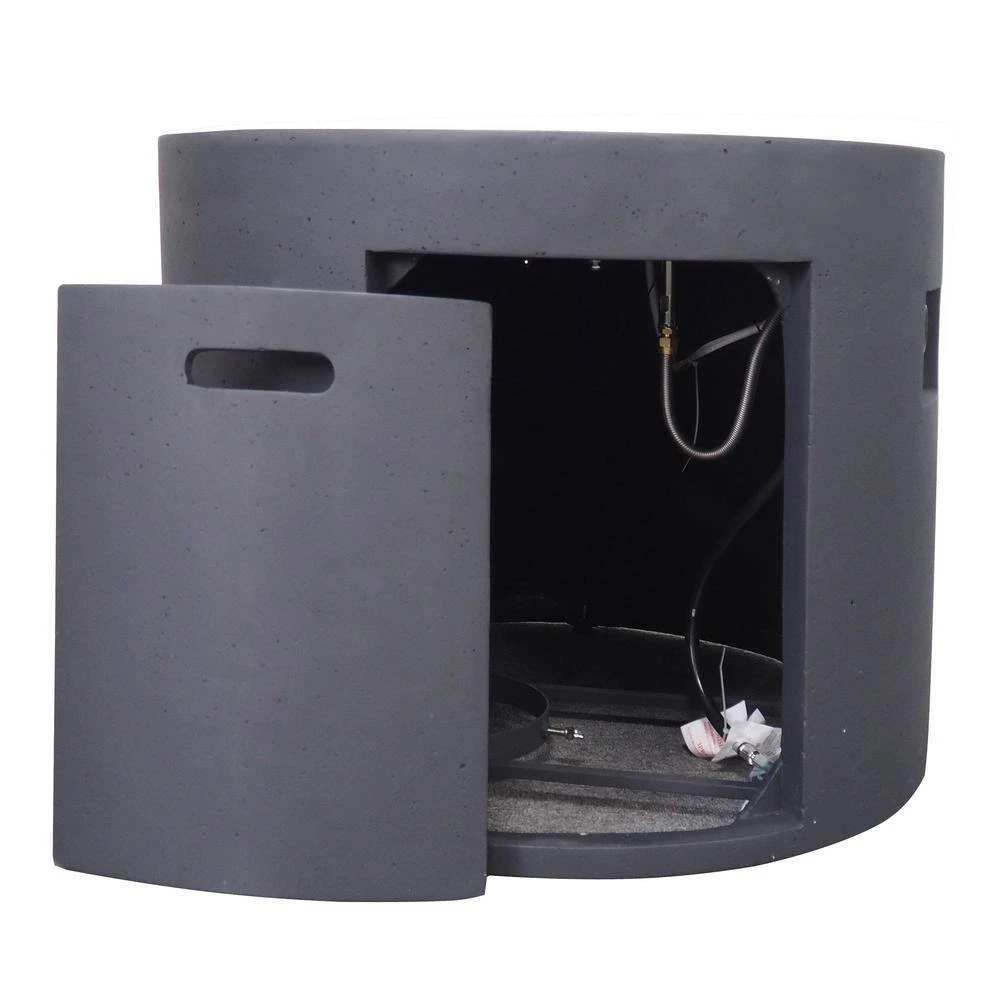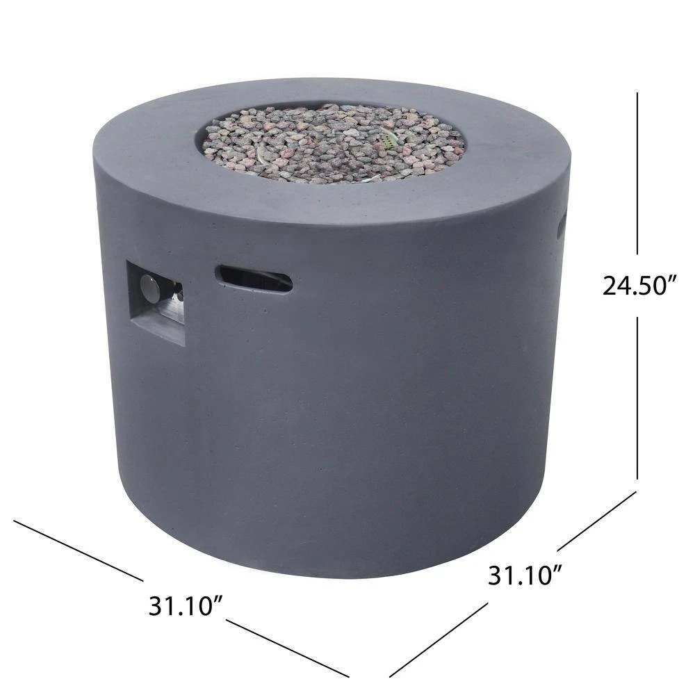 - Includes: One (1) Fire Table. Material: Light Weight Concrete. Finish: Dark Grey.