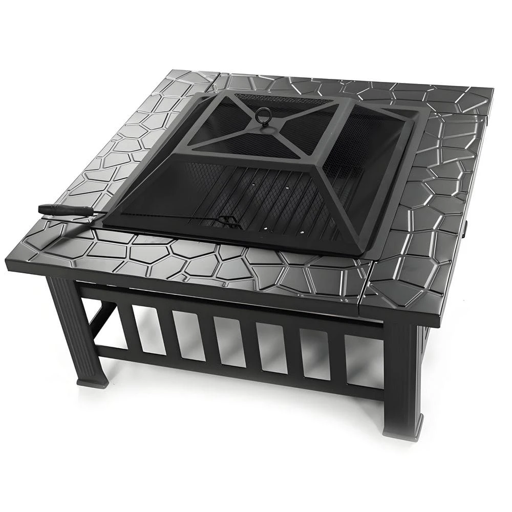 This is a 32 in. Square Metal Fire Pit Table, a masterpiece of modern design that seamlessly blends style and functionality for the ultimate outdoor experience. Crafted with a minimalist European and American aesthetic, this fire pit is not only a stunning addition to your patio or garden but also a practical heating solution for all your outdoor gatherings. Its compact and lightweight design makes it incredibly portable, allowing you to easily transport it to any location, whether it’s a camping trip, a beach party, or a backyard barbecue. The high-temperature powder-coated steel construction ensures that this fire pit is rust-resistant and weather-resistant, providing long-lasting durability and reliable performance in any environment. The stylish flame cut-out pattern not only adds a touch of elegance but also ensures consistent air intake, resulting in abundant and mesmerizing flames that illuminate your evenings with a warm and inviting glow. Setting up this fire pit is a breeze, thanks to its simple design and the absence of complicated tools. Once assembled, you can effortlessly enjoy the soothing warmth and captivating ambiance it provides. Whether you’re hosting a social gathering, enjoying a quiet evening under the stars, or simply relaxing with family, this fire pit is the perfect companion for creating unforgettable memories.
