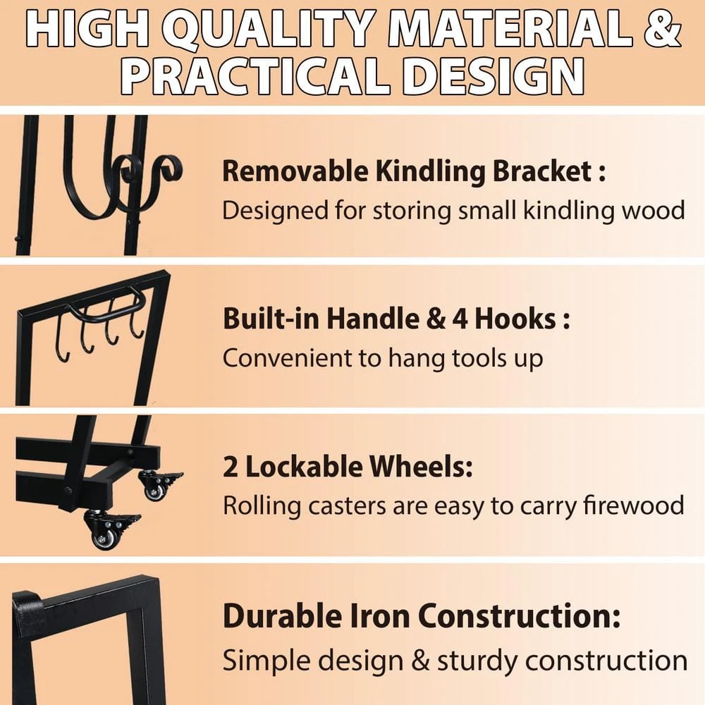 This durable black steel indoor/outdoor firewood log rack will help keep firewood handy whenever needed. With four wheels, this is an ideal way to organize and store logs and you can move the rack effortlessly without. 4-wheels on the bottom save much of your effort to move the rack around.