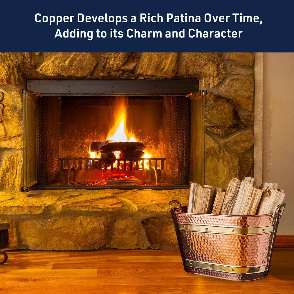 - Fireplace wood holder features sturdy brass handles that allow you to easily transport and carry the tub from room to room, even when full