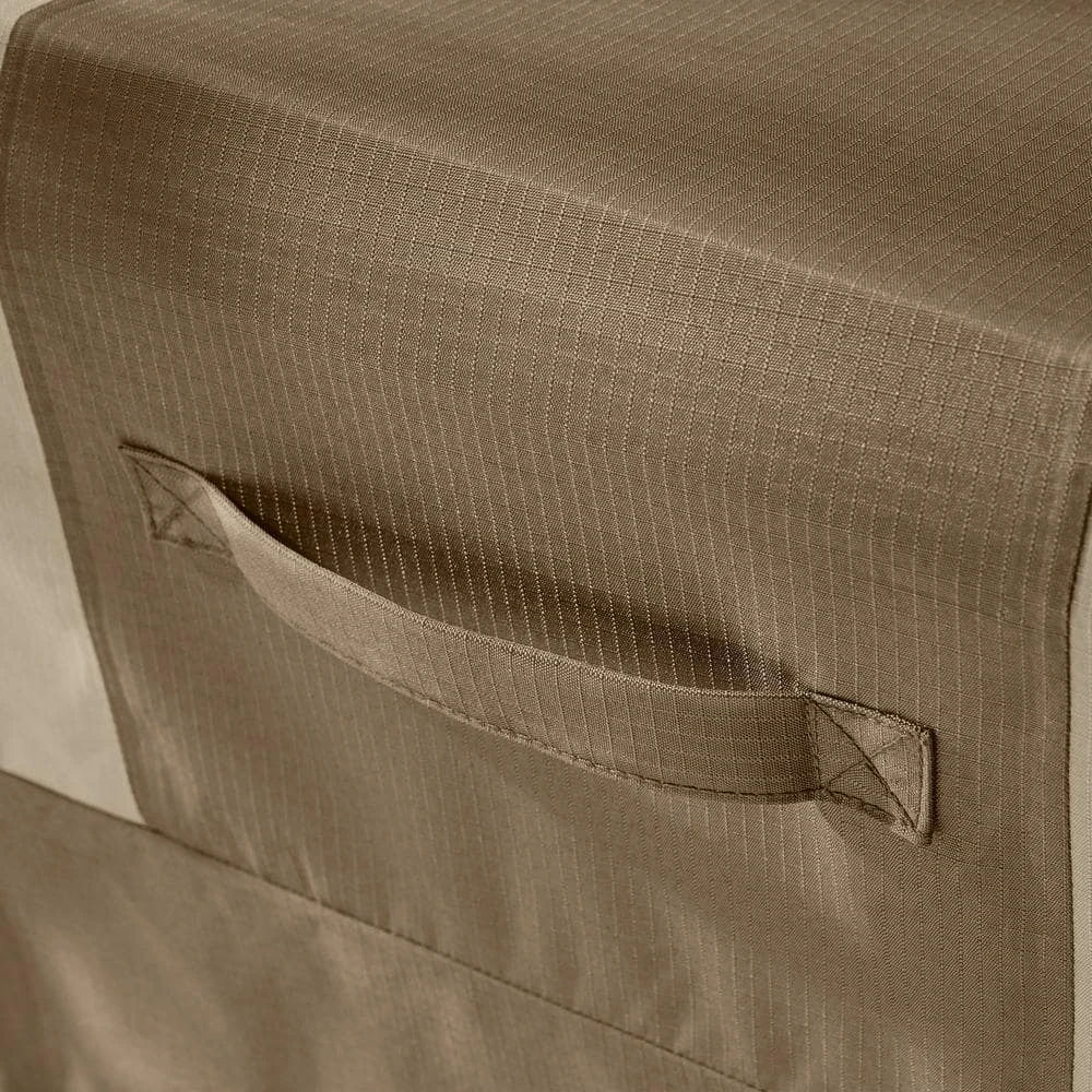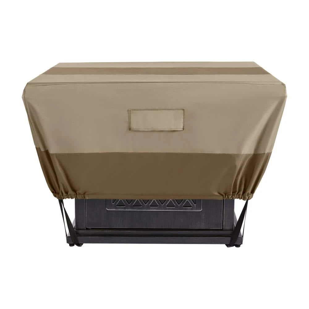 Guard your fire pit against rain, snow and sunlight exposure with this Hampton Bay square fire pit cover. The strong polyester construction stands up to outdoor exposure, and the waterproof design creates a barrier to shield sensitive components from damage. This cover boasts UV-resistant materials to resist fading over time. A square shape and precise dimensions provide a snug fit for secure placement. Showcasing a neutral beige color, this Hampton Bay square fire pit cover blends seamlessly with your outdoor decor.