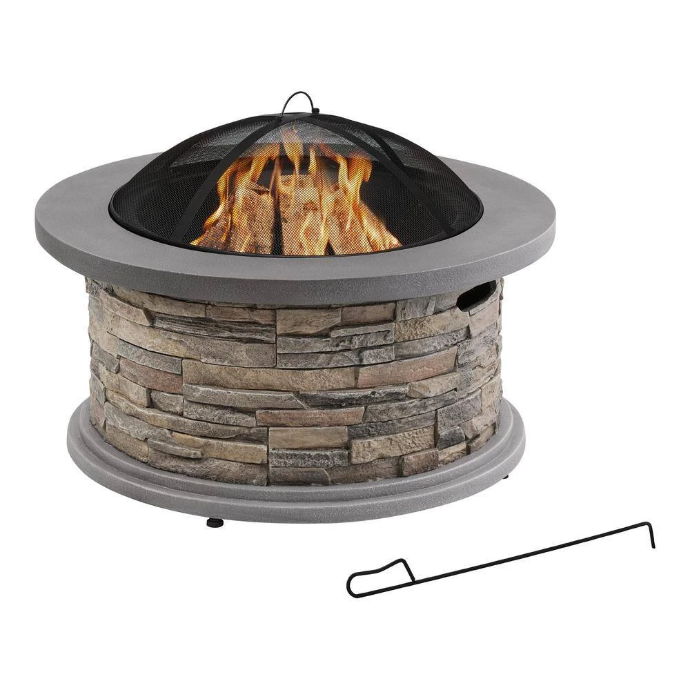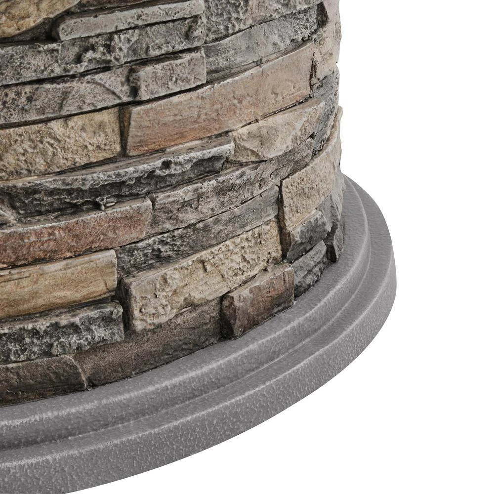 Elevate your backyard bonfire to an elegant presentation of dancing flames with this Stone Collection 36 in. diameter Fire Pit. This timeless design is composed of entirely modern materials – the steel frame base is surrounded by fireproof Envirostone created to share nature inspired faux stone designs. Surround your fire pit with your best outdoor seating group, and the 360 degree fire’s view will be enjoyed by all.