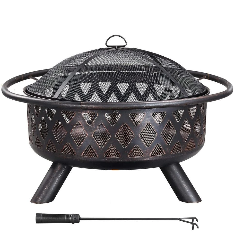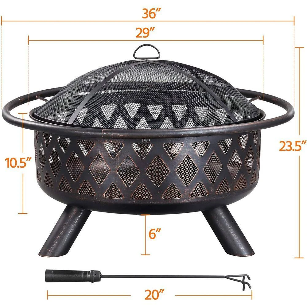 - Oil-rubbed bronze finish lends a distinctive rustic feel to this wood-burning firepit, moreover, the diamond cutouts on the fire bowl exude a mysterious allure when the flame dances within the frame, bringing ambiance to your bonfire nights