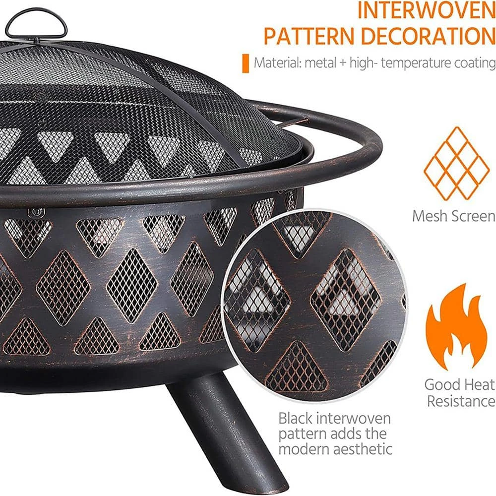 - 10.5 in./26 cm deep circular bowl of this round fire pit for outdoors has an aesthetic and functional diamond pattern around the wall, providing cozy warmth and ambiance and a 360° view of the fire and allowing better airflow