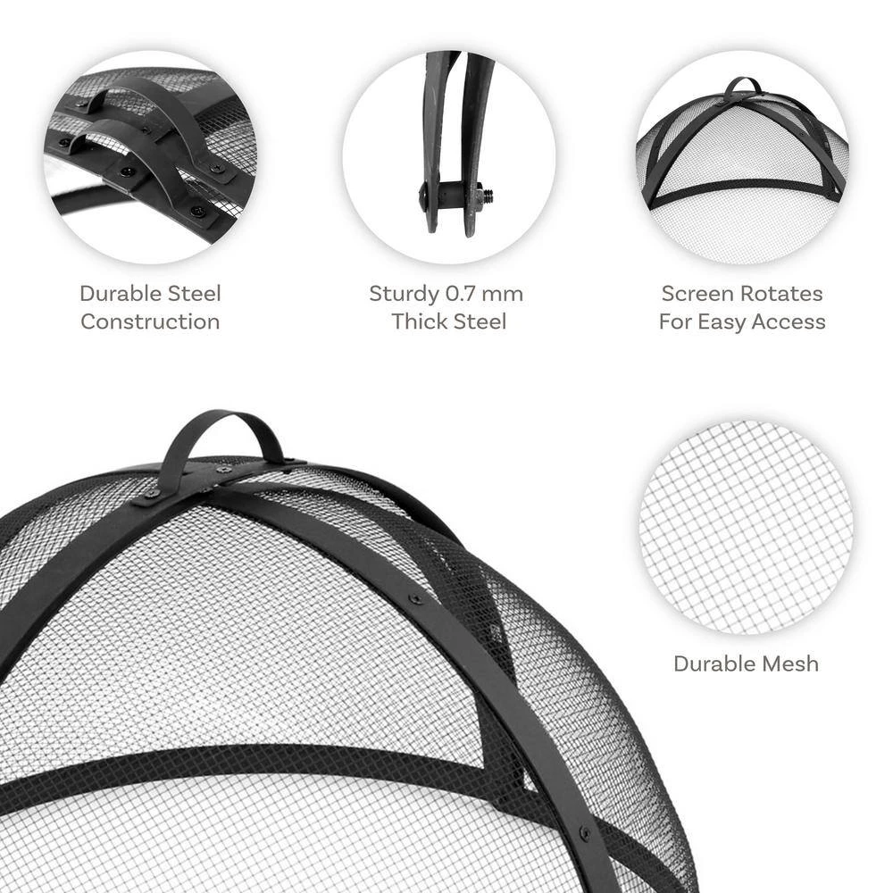 - Outdoor fire pit screen dimensions: 18 in. H x 36 in. D x 35 in. W, weighs 10 lbs. (note: due to the hinges on the screen, the diameter is an inch shorter 1 way than the other, allowing the screen to easily rotate open)