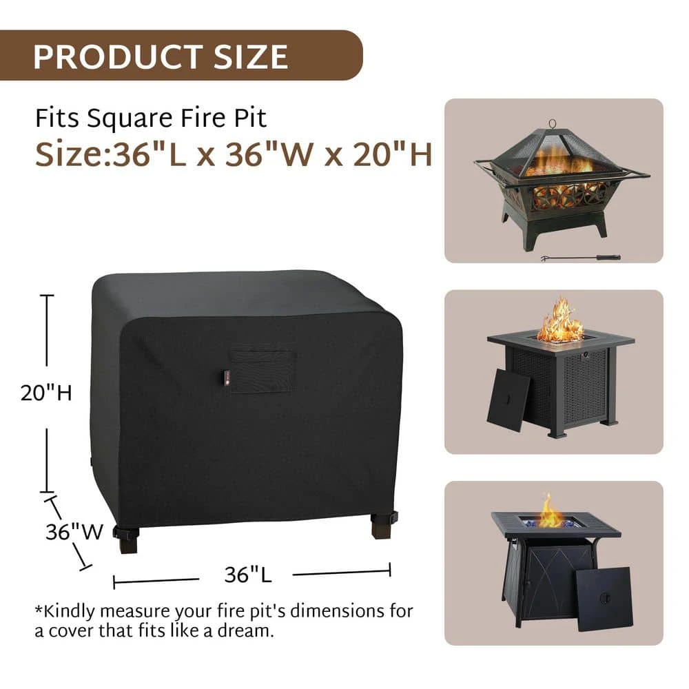 - Crafted from heavy-duty 600D oxford canvas, the cover is built to withstand the elements, providing long-lasting protection for your fire pit