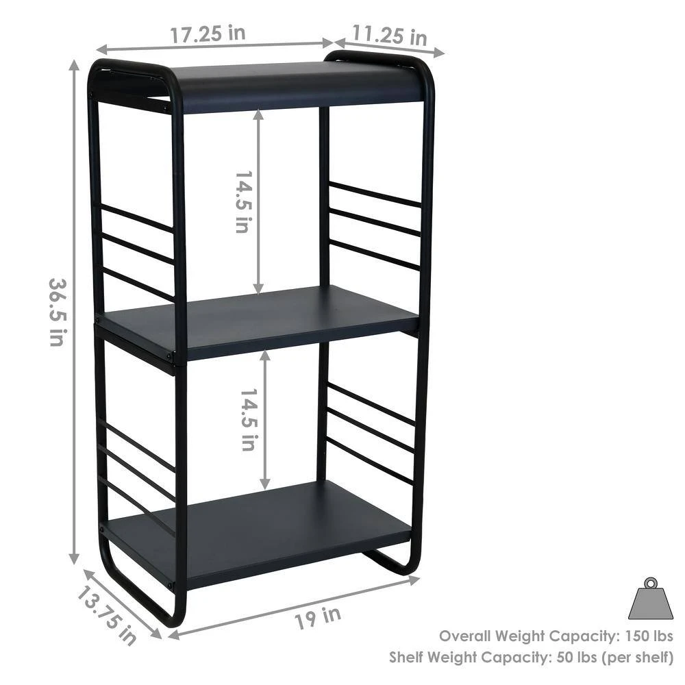 - Perfect size for log storage: 19 in. W x 13.75 in. D x 36.5 in. tall, weighs 20 lbs., height from ground to bottom shelf is 3 in., clearance height between bottom and middle shelf is 14.5 in., clearance between top shelf and overhead cover is 14.5 in., each shelf is 19 in. W x 12.25 in. D x 2 mm, overhead cover is 17.25 in. W x 11.25 in. D, 50 lbs. weight capacity