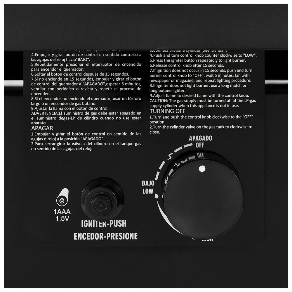 - Hidden propane tank (a standard 20 lb propane tank—not included)