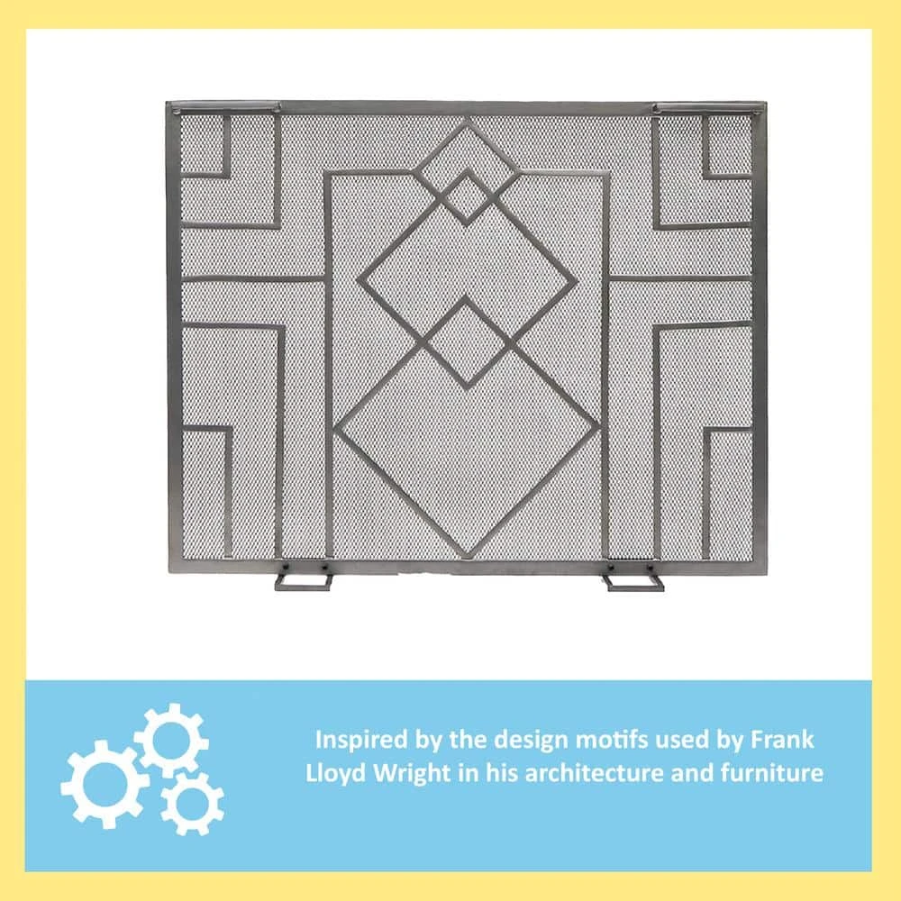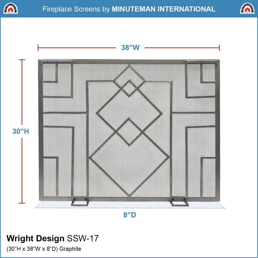 Inspired by the design motifs used by Frank Lloyd Wright in his architecture and furniture, the diamond windowpane design of the Wright Design Screens will complement any Arts and Crafts interior. Low profile free-standing flat screens are ideal for a shallow hearth, complementing decor with minimal bulk. The integrated handles allow the screen to be easily moved aside while tending the fire. Available in two sizes. Pair this screen with our Minuteman International Wright Design Log Basket (LCW-16) and Wright Design Tool Set (WR-16) to complete the period style.