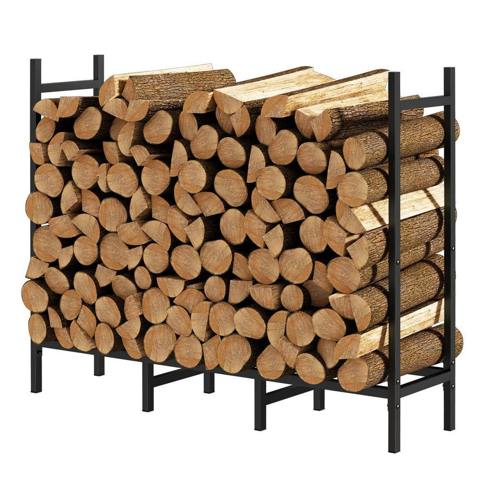 - STURDY AND DURABLE: The 4-foot long firewood storage rack is made of heavy-duty tubular steel construction with a double-layer black powder-coated finish that is durable, strong, rust-resistant and weatherproof.