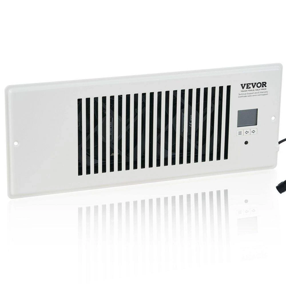 This register booster fan is designed to enhance airflow through wall and floor registers, drawing more air from HVAC ductwork to target spaces. It delivers 100 CFM airflow with 10 adjustable speeds, letting you customize airflow based on your needs.Powered by a 6W PWM DC motor, it’s energy-efficient-cutting electricity bills and reducing environmental impact-while operating quietly at ≥18 dB, so it won’t disturb your sleep. It also comes with a programmable LCD controller: built-in temperature sensor auto-adjusts airflow intensity to your set room temp, and the screen turns off automatically to save power and avoid bright light disruption.Controlling it is easy with the included remote, which works up to 26 ft away-letting you adjust speed or switch modes from bed or the couch. Specifically made for standard 4” x 12” registers, it comes with necessary installation screws, plugs in for instant use, and has an aluminum frame with a sleek finish that matches any room decor.