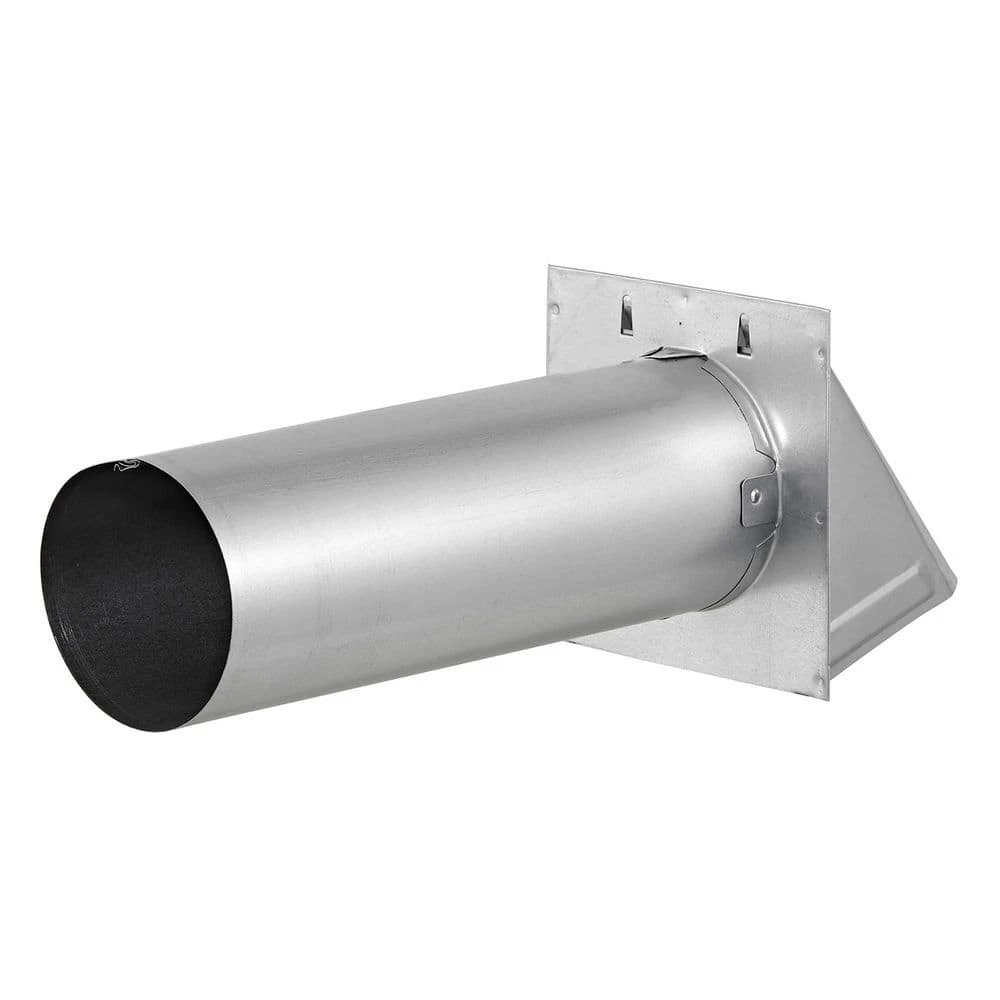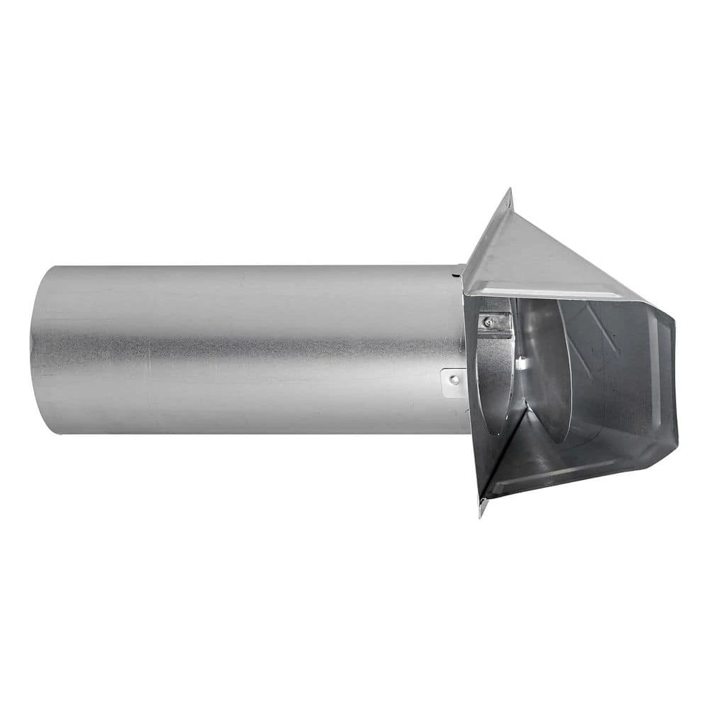 The Lambro 4 in. 26-Gauge Galvanized Steel Wall Exhaust Hood Dryer Vent with Damper and 11 in. Pipe is ideal for venting through the wall. The damper seals the vent opening when the clothes dryer or bath fan is not running because no exhaust air exits the vent. When the appliance operates, the exhaust air pressure pushes the damper open to let the exhaust air escape from the vent. The exhaust vent is for new and replacement installations over an existing 4 in. opening. It features an opening with a net-free area of 20.5 sq. in. allowing for less back pressure. The vent’s manufacturing material is 26-gauge galvanized steel for durability and longevity. Make sure to check local building codes before installation.