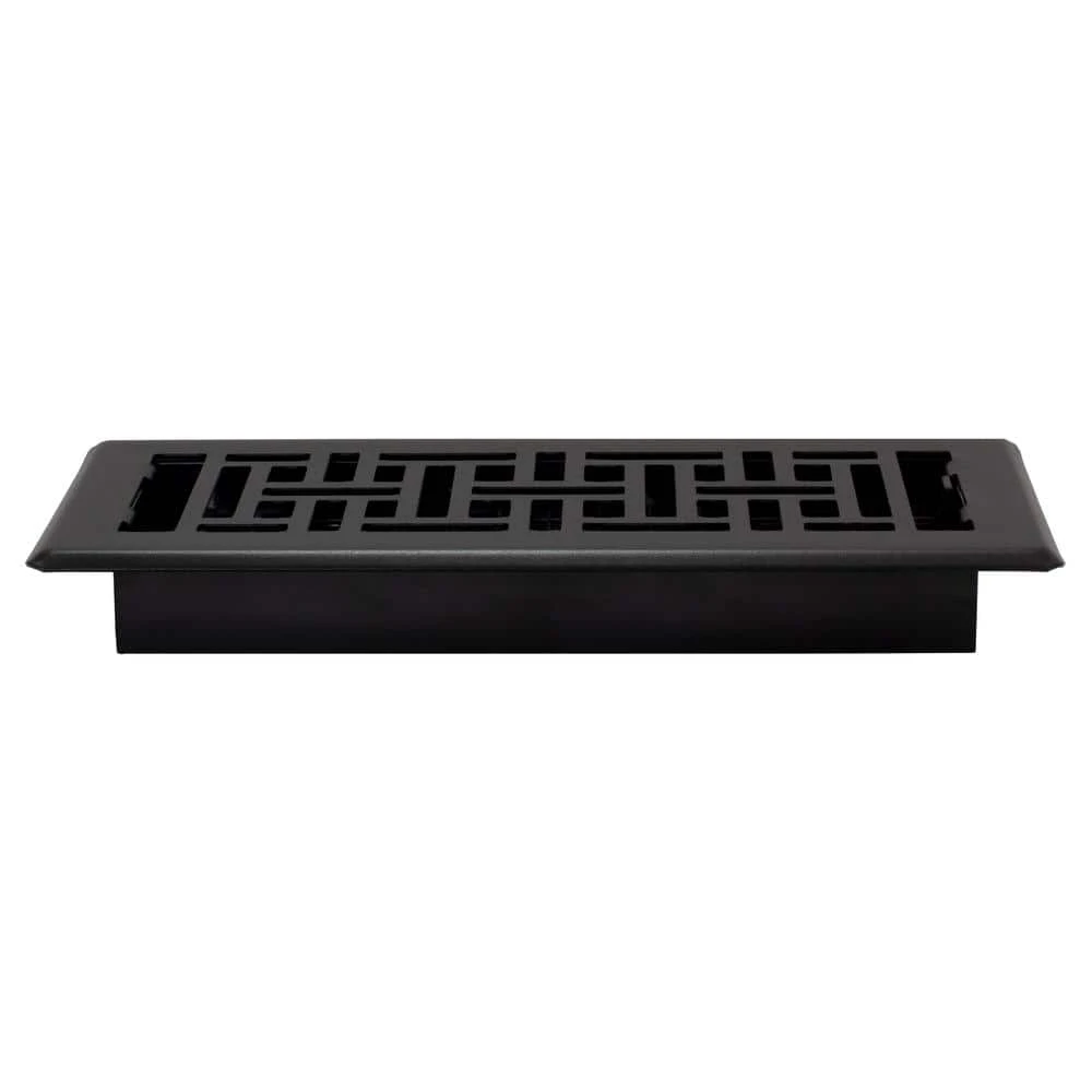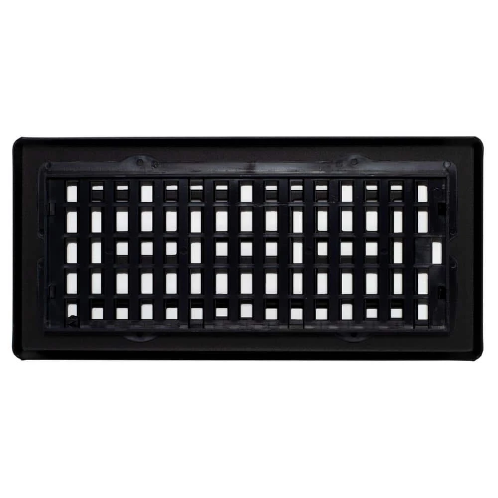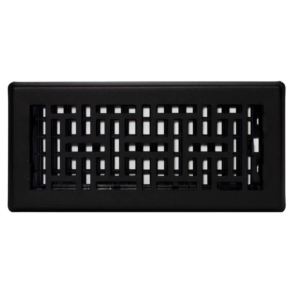 The 4 in. x 10 in. Oriental Design Steel Floor Register is an elegant addition to any home decor. The powder-coated textured black finish complements any style. The damper box is high-impact high-impact plastic, not metal which can rust and seize up. This is not a cheaper option, it’s the best option.