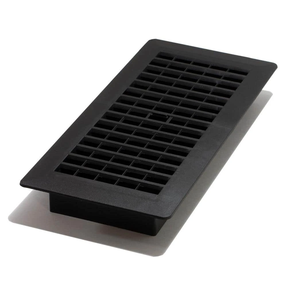 The 4 in. x 10 in. A plastic Louvered Floor Register in black is an elegant addition to any home. The plastic register is a great economical solution for any room. The grate is easy to install and no tools are required. Ideal for new installations or replacing existing grates.