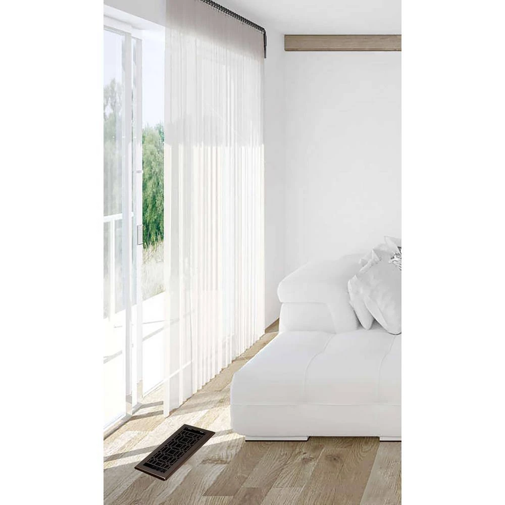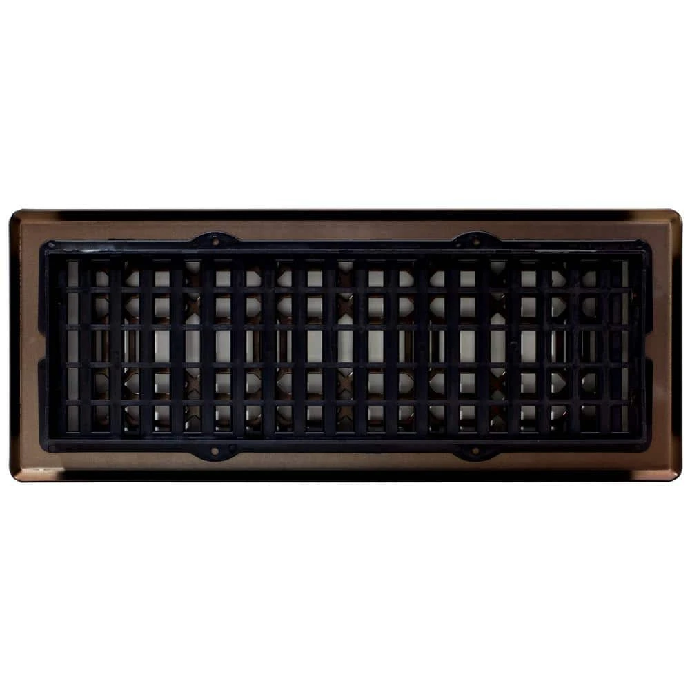 The 4 in. x 12 in. New Gothic Steel Floor Register is an elegant addition to any home decor. The oil rubbed bronze finish has a lacquered coating for added protection.. The damper box is made from high-impact plastic, not metal which can rust and seize up. This is not a cheaper option, it’s the best option.