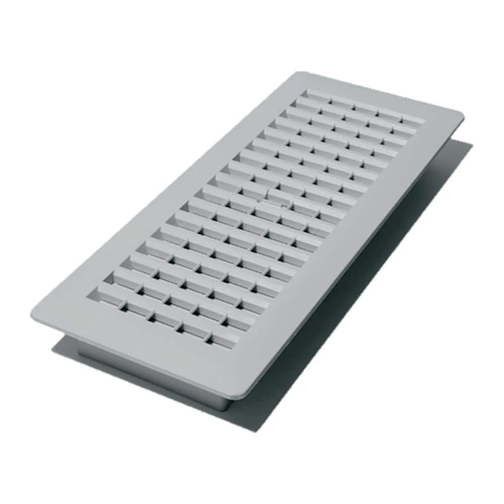 The 4 in. x 12 in. A plastic Louvered Floor Register iin grey is an elegadditiononal to any home. The plastic register is a great economical solution for any room. The grate is easy to install and no tools are required. Ideal for new installations or replacing existing grates.