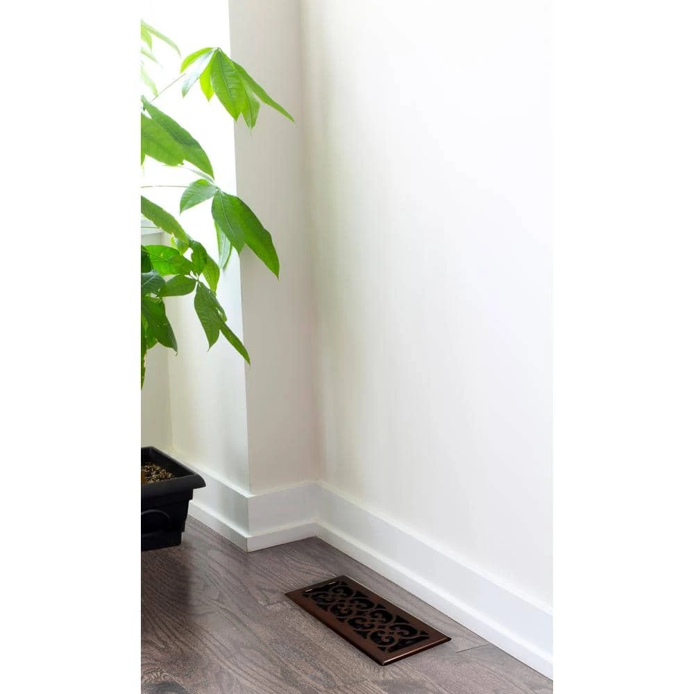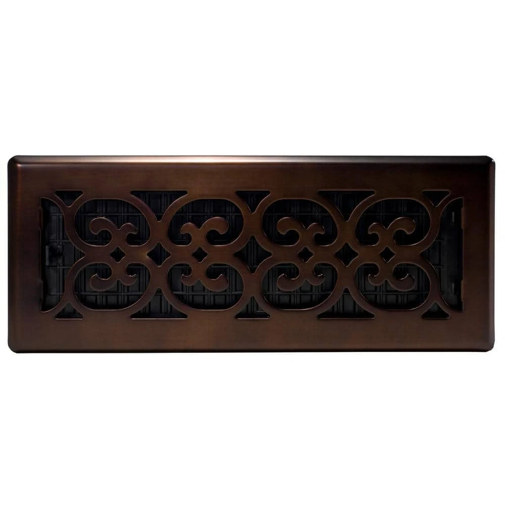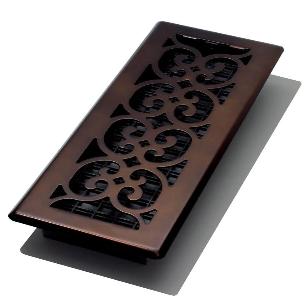 - Scroll design steel plated – rubbed bronze finish floor register