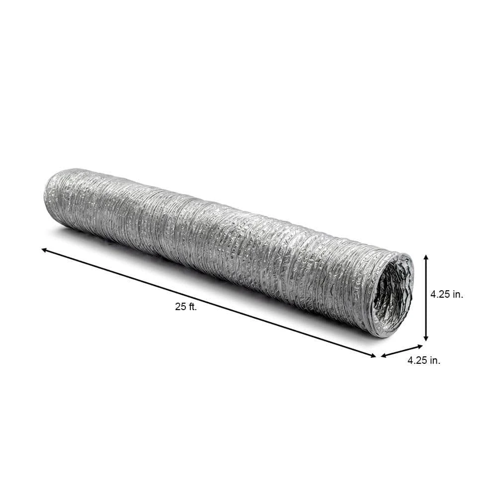 This 4 in. x 25 ft. Dryer Vent Duct is ideal for both gas and electric dryer application. It is constructed of heavy-duty, fire resistant, 4-ply aluminum foil laminate that encapsulates a high density, corrosion resistant wire helix. This forms an air tight and easy to use air duct.