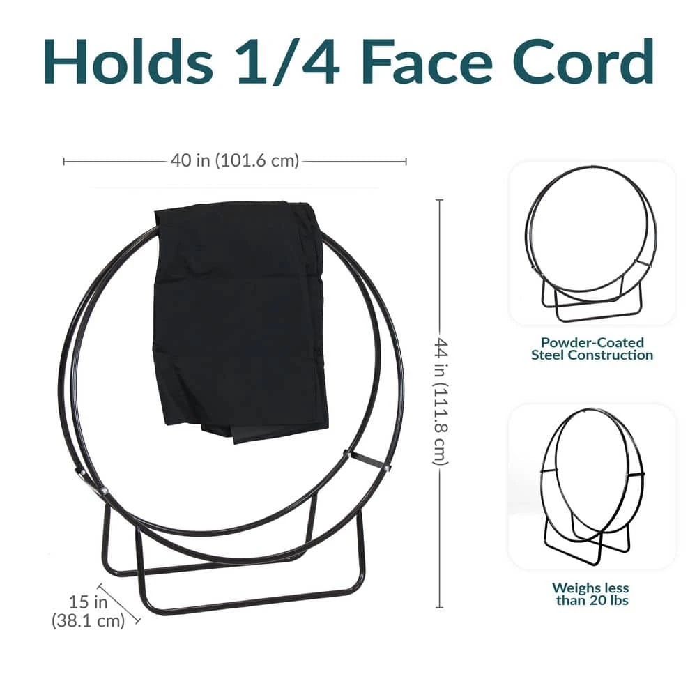 - Log holder dimensions: 40 in. Dia x 15.5 in. D, weighs 13 lbs., the included cover is 40 in. L x 41 in. W x 20 in. D