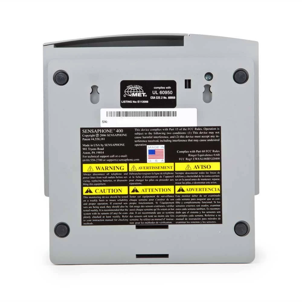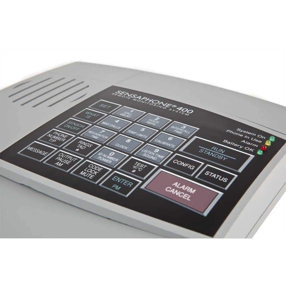 The Sensaphone 400 Monitoring System offers small-business owners, vacation property owners, and other property managers an easy and inexpensive way to monitor up to four temperature sensitive assets or other equipment at a remote facility. If the temperature exceeds set high or low limits the auto dialer will immediately notify up to four users via a phone call. The system requires a standard telephone (POTS) line and allows users to record custom messages that will be played over the phone in the event of an alarm. A local alarm can also be activated if the programmed value of the inputs are exceeded. Users can call the device to get the status of each monitored condition and it will provide time to listen in to any sounds on site. The system will continue to monitor all conditions for up to 24 hours in the event of a power failure while nonvolatile memory retains system settings. The keypad gives users simple onsite programming, while the LEDs provide an at-a-glance system status.