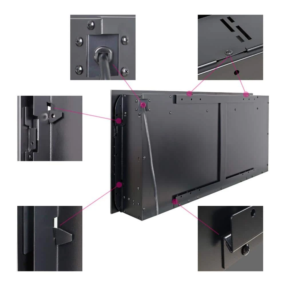 - Sleek design with a thin profile of 3.8 in. and black silk-screen tempered glass