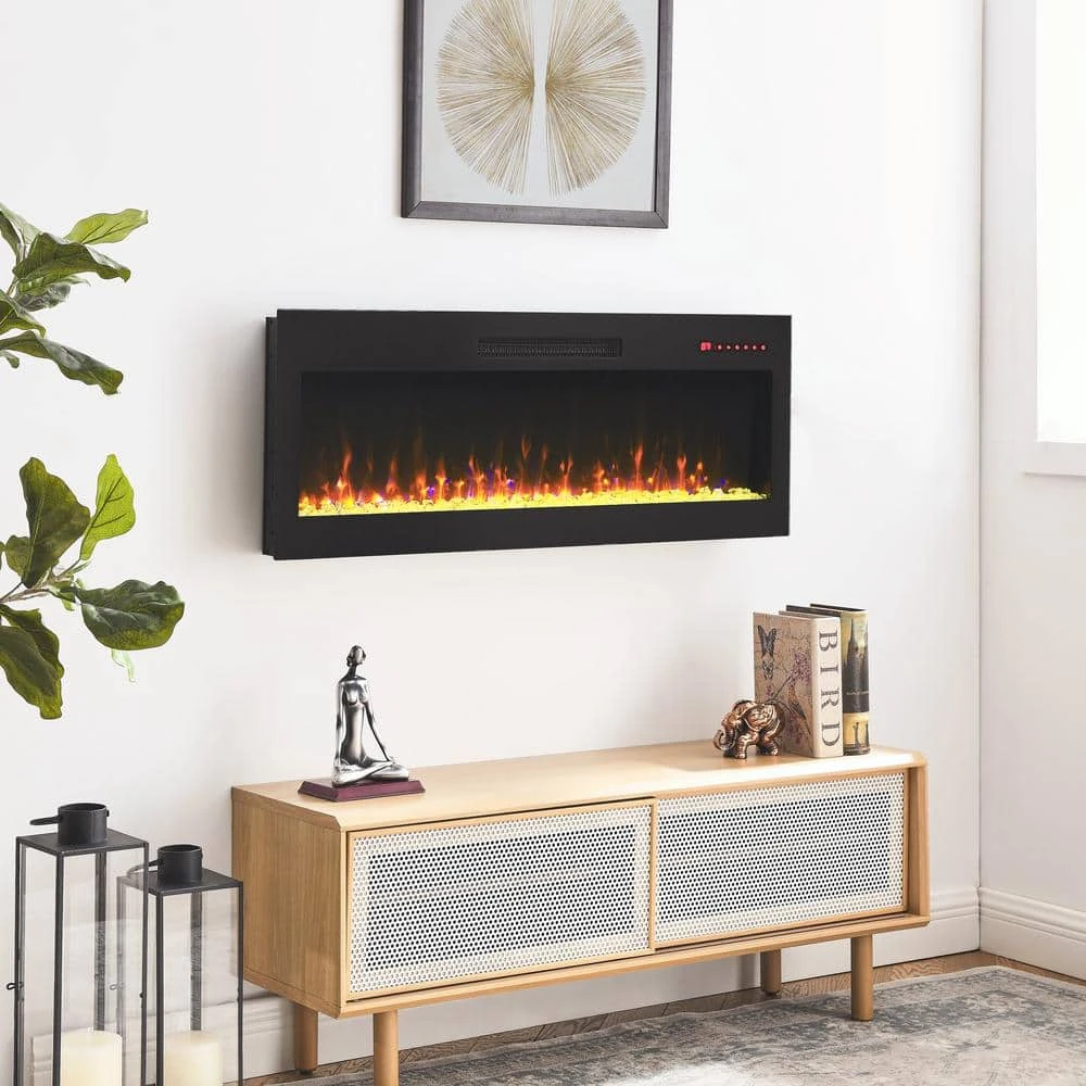 Enjoy safety and comfort with our CSA/UL certified electric fireplace, ensuring long hours of reliable service and user safety. Equipped with dual safety guards that automatically cut off power in the event of overheating and fuse protection.1400-Watt of power delivers 5, 000 BTU’s per hour, enough to provide extra warmth to spaces up to 400 sq. ft. Eleven temperature settings ranging from 64°F to 82°F allow you to adjust the temperature to your heart’s content. The LED light source lasts for up to 50, 000 hours, ensuring long-lasting brightness and performance. 3-display styles (wall-mounted, built-in, tabletop) and a timer function with flexible settings from 1 to 9 hours. Even without heating, you can enjoy 16 flame colors and ash bed colors, 5 levels of flame and ash bed brightness and adjustable flame speed.