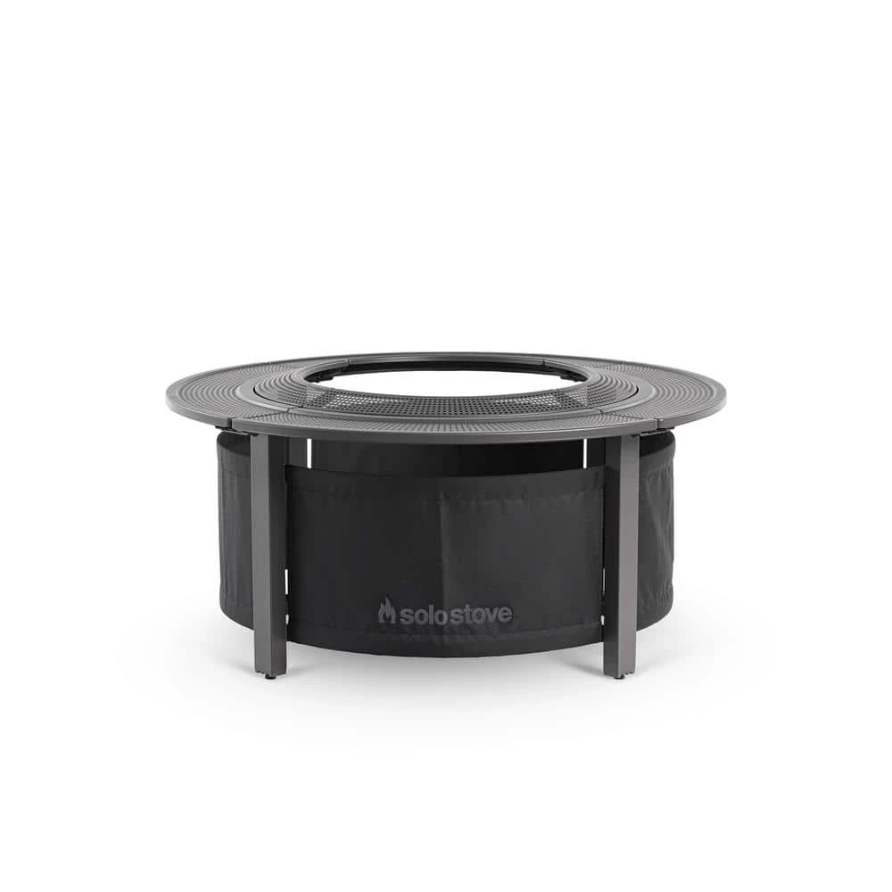 Protect wandering hands and wagging tails with Surround, a 360° protective barrier that provides peace of mind around your favorite backyard fire pit. Nest your Solo Stove inside the ideally designed steel housing, rest your plates and drinks on the roomy panoramic shelf and confidently stage your fire pit on decks and patios with the off-ground, elevated design. Do not use product with Solo Stove stand or any additional elevation. Using Surround with stand can cause instability and uneven placement.