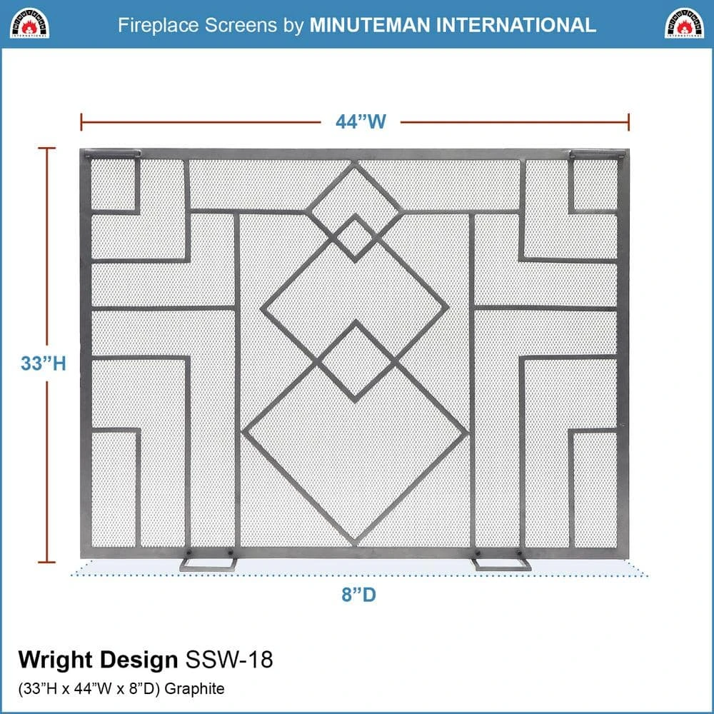 Inspired by the design motifs used by Frank Lloyd Wright in his architecture and furniture, the diamond windowpane design of the Wright Design Screens will complement any Arts and Crafts interior. Low profile free-standing flat screens are ideal for a shallow hearth, complementing decor with minimal bulk. The integrated handles allow the screen to be easily moved aside while tending the fire. Available in two sizes. Pair this screen with our Minuteman International Wright Design Log Basket (LCW-16) and Wright Design Tool Set (WR-16) to complete the period style.