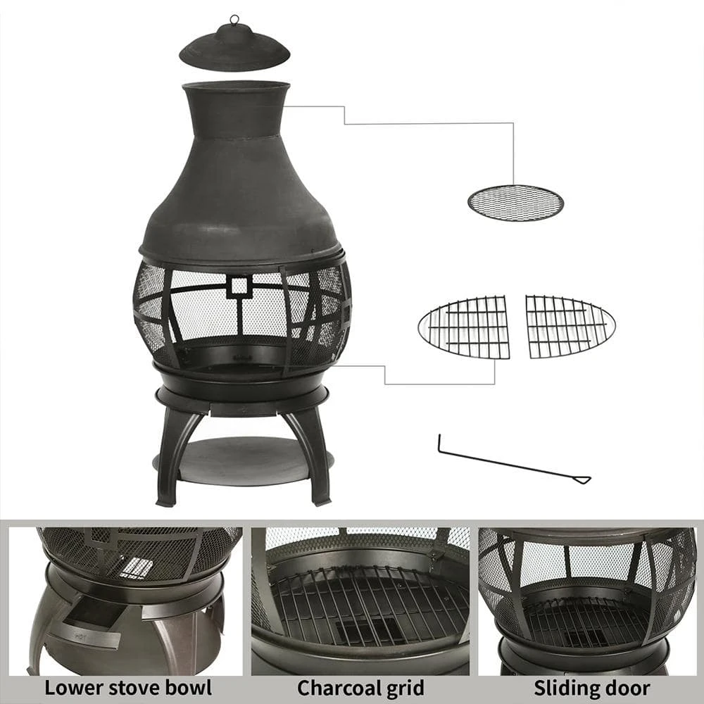 - Wave goodbye smoke-stung eyes round roof and rain cap on chimney help protect the fire cage from the elements and it designed to funnel smoke up and away from your guests gathered around the chiminea