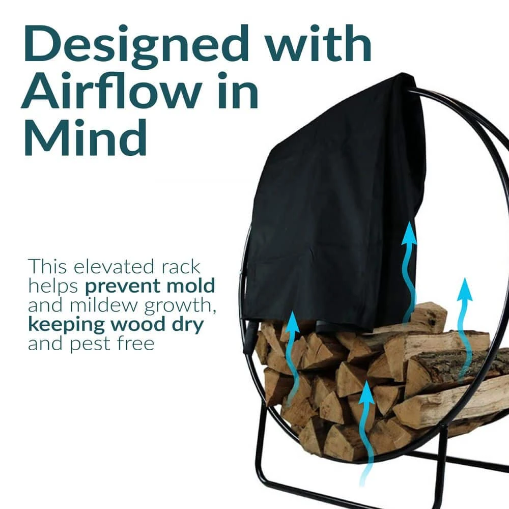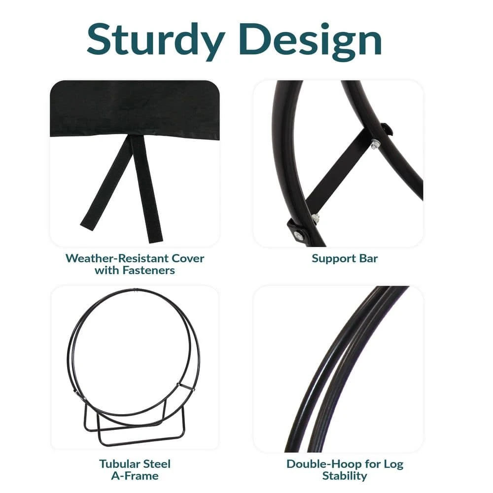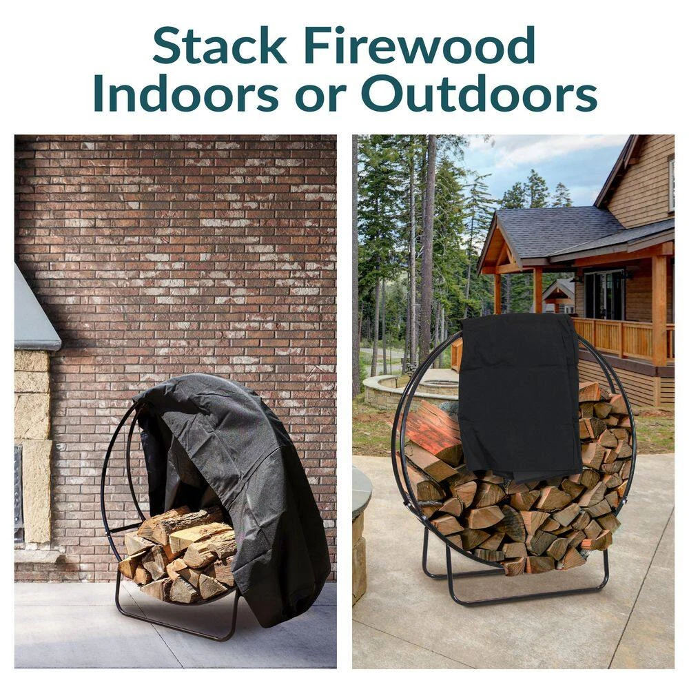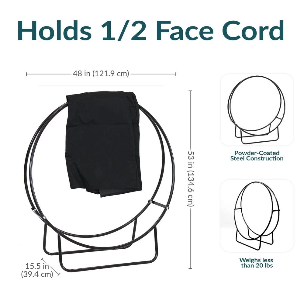 This durable tubular steel firewood log storage rack and PVC cover stores firewood neatly by the fire pit or fireplace. This 48 in. hoop will keep 1/2 in. face-cord of wood organized and ready to go. With its powder-coated finish and sturdy construction it is engineered to last. Plus, with the included log hoop cover, firewood will always be protected from the elements and at-the-ready whenever needed.