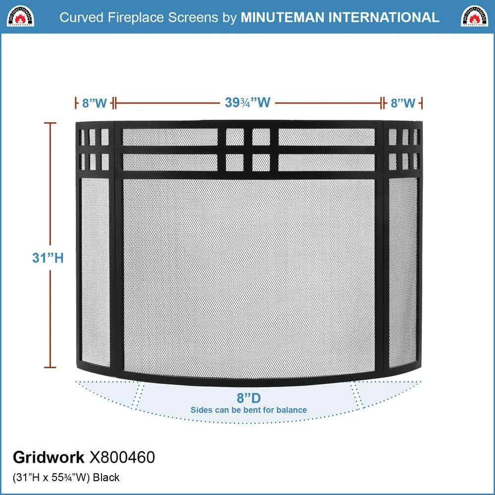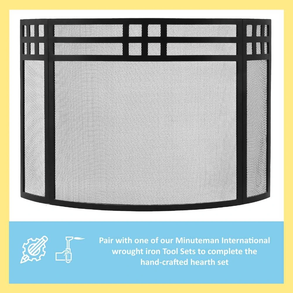 The Gridwork Curved Fireplace Screen with a classic window-pane pattern consists of 3 gently curved panels. It can be used as a curved screen or as a traditional 3-part folding screen, with each side placed at an angle. Surround your fireplace with a pleasing curve while eliminating the visual clutter of handles and feet. This style, well-suited for a Craftsman or Mission style home, can be paired with one of our MINUTEMAN INTERNATIONAL wrought iron Tool Sets to complete the hand-crafted hearth set.