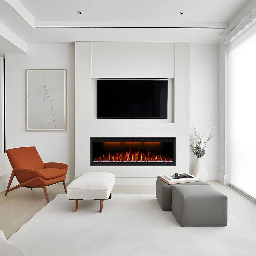 This Wi- Fi Smart fireplace is designed for both Wall Mounted and Recessed installation, which is a perfect solution for any space. This wall mounted fireplace comes with logs and crystals that resemble burning coals, creating an authentic feel and look of a traditional fireplace. Also it could be a decorative fireplace with no heat for-year-round ambience.