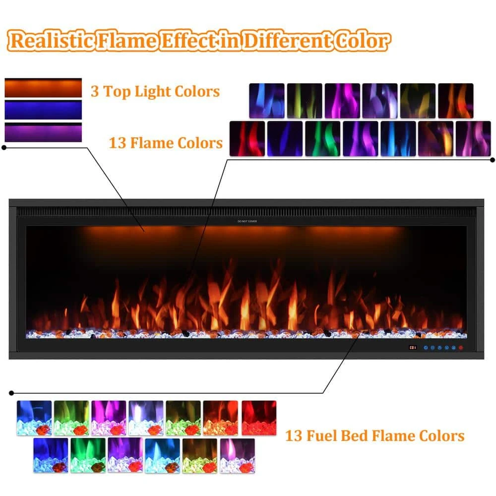 - Multi-function: 13 adjustable flame colors, 13 fuel bed flame colors, 3 top light colors, a variety of adjustable colors for different visual experience, 1-hours to 9-hours timer, overheat protection, 120-Volt, 750-Watt and 1500-Watt also equipped with logs and crystals, the fireplace can provide heating for a space of 400 sq. ft.