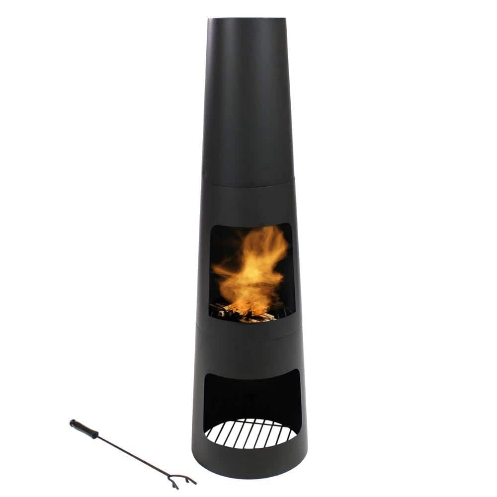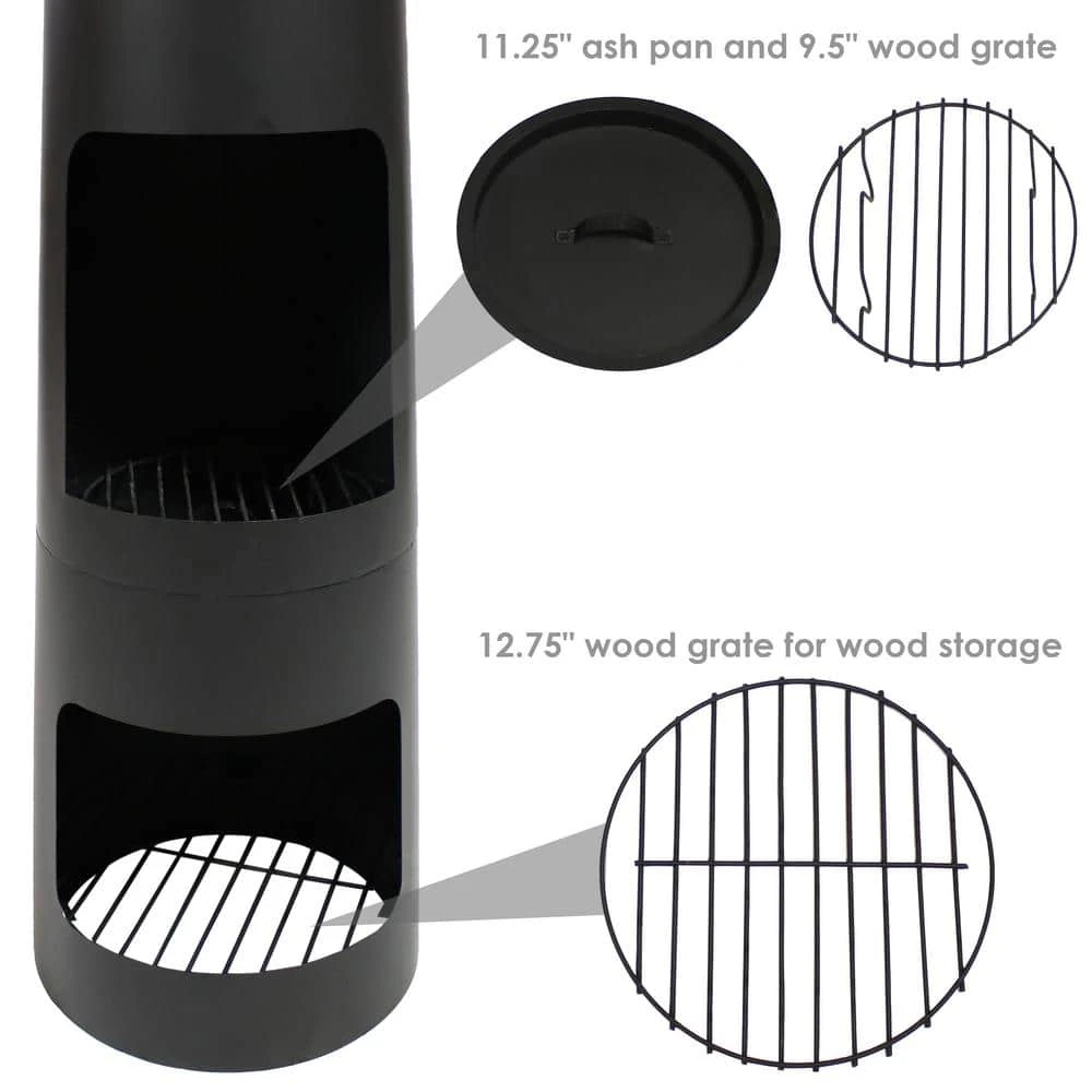 - Heavy-duty construction: chimenea firepit is made of strong steel with a black high-temperature paint finish, ideal for creating a cozy gathering space on your outdoor living area, includes 1 chiminea fire pit, 1 poker, 2 grates, 1 cover and 1 ash pan, from ground to bottom grate is 3.5 in. tall, from ground to bottom of ash pan is 15.5 in. tall, from top grate to top of chiminea is 32.5 in. tall