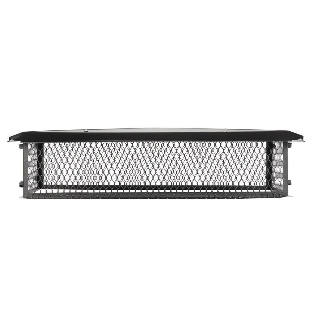 The BigTop Multi-Flue Chimney Cover by HY-C Company is a smart, attractive choice for multi-flue chimneys. The black galvanized steel BigTop features a 24-Gauge removable galvanized steel hood with scalloped corners and roll-formed edges for extra strength and easy cleaning. The attractive black powder coat finish helps it to stand up to the elements. The 18-gauge 3/4 in. galvanized steel expanded mesh is available in 8 in., 10 in. and 14 in. heights. The 24-Gauge galvanized steel base flanges are designed to mount on a flat chimney top and measure about 1-1/4 in. on each side. The top-mount design attaches easily and securely with included tapmark masonry screws and tube of all-weather construction adhesive. Backed by HY-C’s 7-Year Limited Warranty.