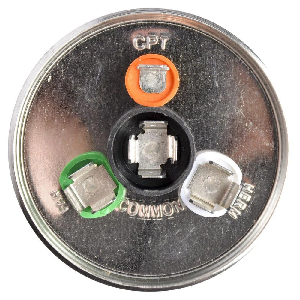 AmRad capacitors now feature patented CPT. CPT acts as a off switch between the hard start and compressor in the event of a failed run capacitor; preventing damage and possible compressor failure. Available on 40+ MFD single-value and 20/3+MFD dual-value capacitors. Amrad’s USA-made capacitors are filled with a thick non-PCB dielectric fluid to reduce heat. Backed by a 5-year warranty and over 80 years of quality, reliability, and durability. Pair with the CPT fuse Wire on AmRad’s Universal hard-start kits for the best compressor protection. These USA-made capacitors have a double-rolled cover that provides a leak-proof enclosure and are encapsulated in a thick non-PCB dielectric fluid to reduce heat.