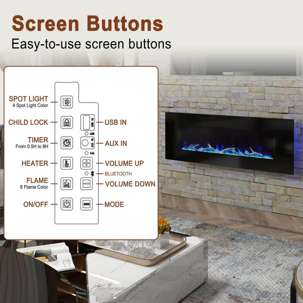 - Enhanced ambiance: remote control and touch screen summary dual mode with display, also featuring a carbon bed with crystal and faux logs, this electric fireplace creates a realistic and soothing flame effect, adding warmth and charm to any room