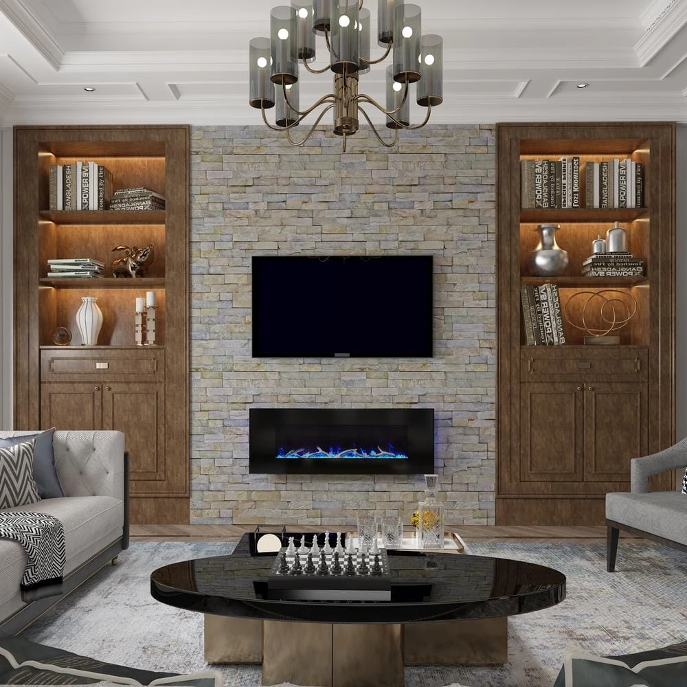 - LED flame effect: experience the cozy ambiance with 8 adjustable flame settings, including 7 flame effects and a breathing effect, also enhance the atmosphere with 4 stunning backlight options, allowing you to customize the lighting according to your mood and preference