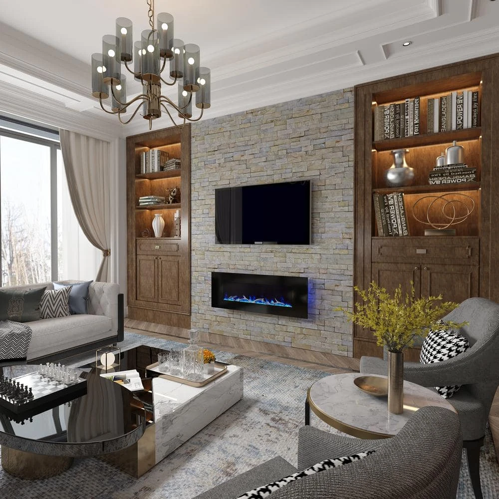 A wall-mount fireplace with multicolor flame and CSA certification combines the functionality of a fireplace with the added feature of multicolor flames for an enhanced visual experience. Upgrade your space with our Premium Electric Fireplace and enjoy the perfect combination of functionality and style. Create a cozy and inviting atmosphere in any room with this stunning fireplace.