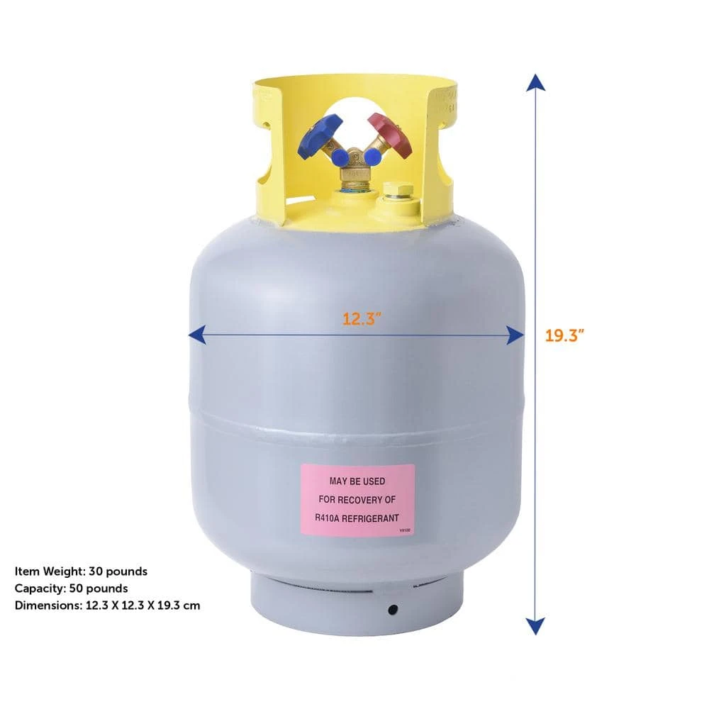 - SAFETY TESTED EMPTY TANK – 50LB refrigerant recovery cylinder is X-ray and hydrostatically tested, pre-purged, and vacuum-ready for refrigerant filling (also available in 30LB, 123LB, and 239LB sizes – Models YSN301R, YSNR123, YSNR239)