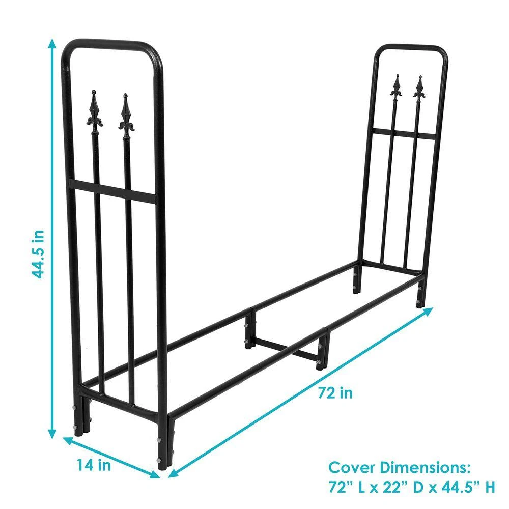 Steel indoor/outdoor decorative firewood storage rack for logs is perfect for any garden, patio or indoor space. Stylish design meets function and organization with this decorative firewood log rack and cover set. Store firewood neatly with this durable steel rack. This 6 ft. rack will keep wood organized and ready to go. With its sturdy steel construction it is engineered to last. Plus, the cover ensures that the firewood will remain dry if used outdoors.