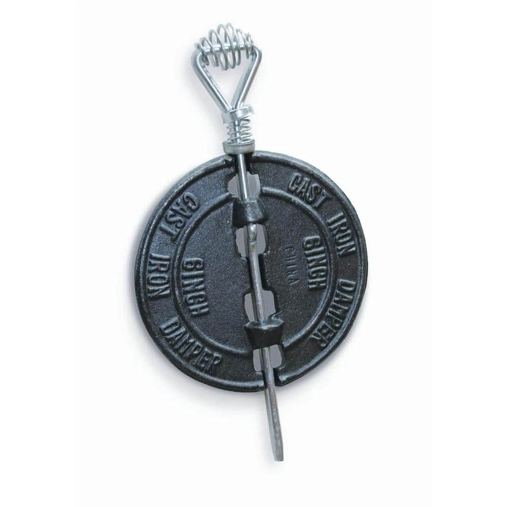 The Master Flow 6 in. Black Stove Pipe Damper is made of cast iron and steel to ensure strength and durability. This damper is designed to fit most stoves with a 6 in. flue pipe. It features a spring-loaded pin to help keep the damper secure. The spring handle is designed to keep cool to the touch. It has a maximum temperature rating of 400 degrees Fahrenheit.