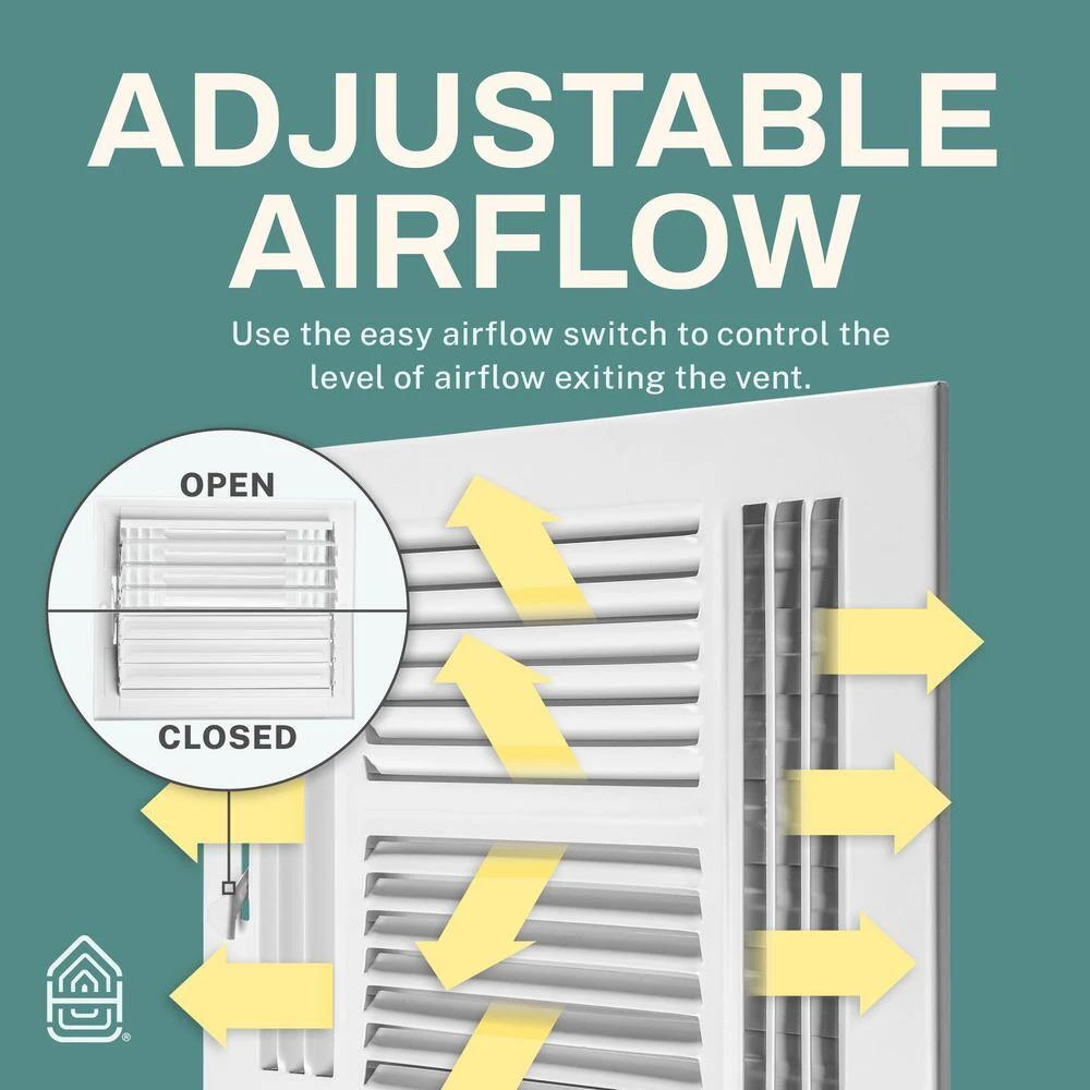 - 4-way ceiling vent cover: this premium white vent cover offers 4-way air deflection with a multi-shutter damper to control the amount of ventilation to a room, a stamped face steel construction with 1/2 in. fin spacing allows for high airflow