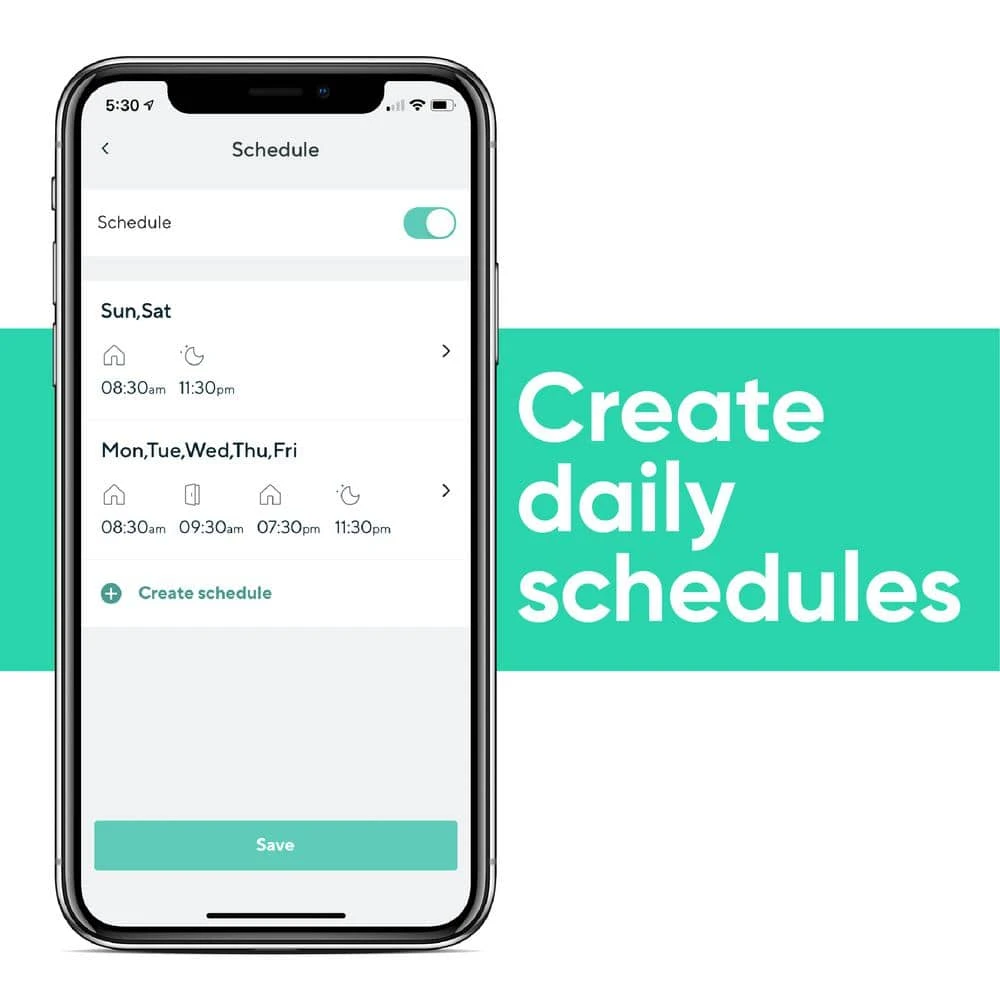 - 7-day scheduling: create schedules for every weekday and weekend so you don’t have to keep going back and forth to your thermostat