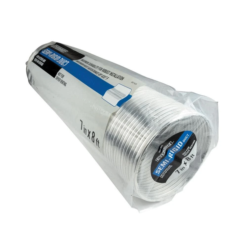 The 7 in. x 8 ft. Semi-Rigid Aluminum Duct is ideal for bathroom fan and kitchen range hood exhausting. This duct is totally noncombustible. It has a maximum operating temperature of 435 degree F.